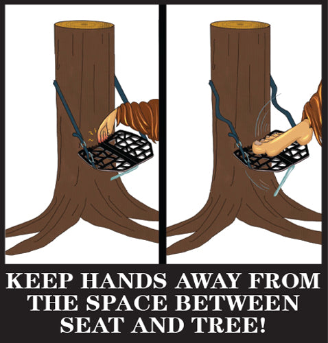 Adjust the height of the seat, and use the Cam Lock to tighten and hold the seat in place. Make sure that all straps are tight, adjust the seat and have the kickstand touch the tree when the seat is tilted above horizontal - it will act as a brace with weight added to the seat.